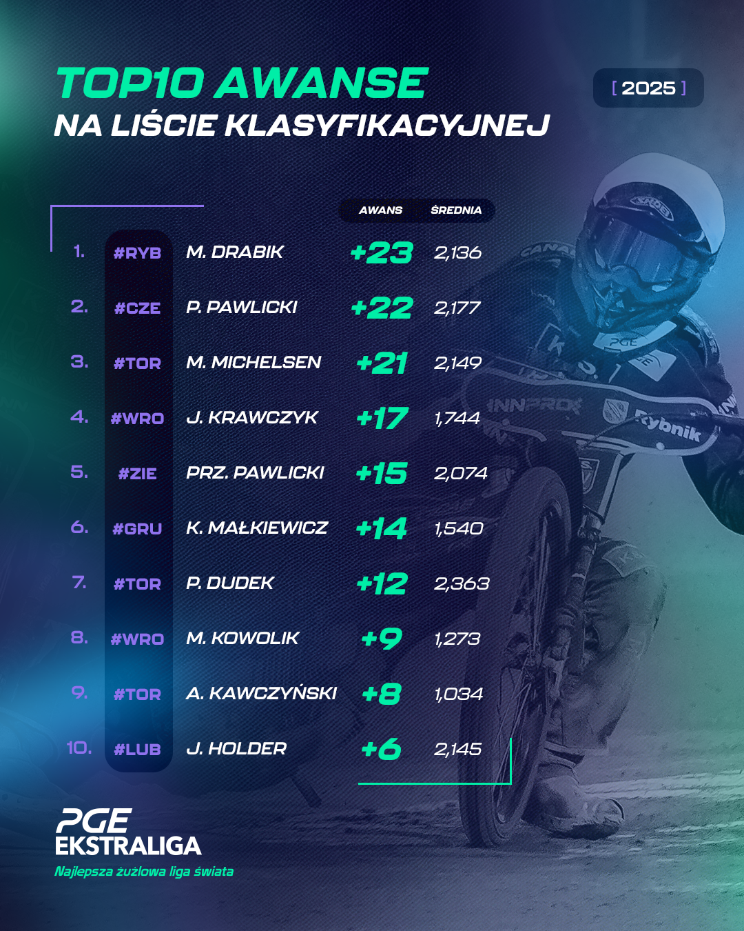 PGE Ekstraliga 2025: Maksym Drabik z największym progresem w klasyfikacji indywidualnej