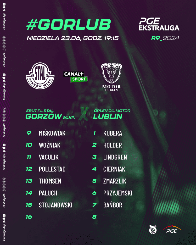 Mecz ebut.pl Stal Gorzów vs. Orlen Oil Motor Lublin rozpocznie się w niedzielę 23 czerwca o godzinie 19:15. Transmisję z tego starcia przeprowadzi Canal+Sport.