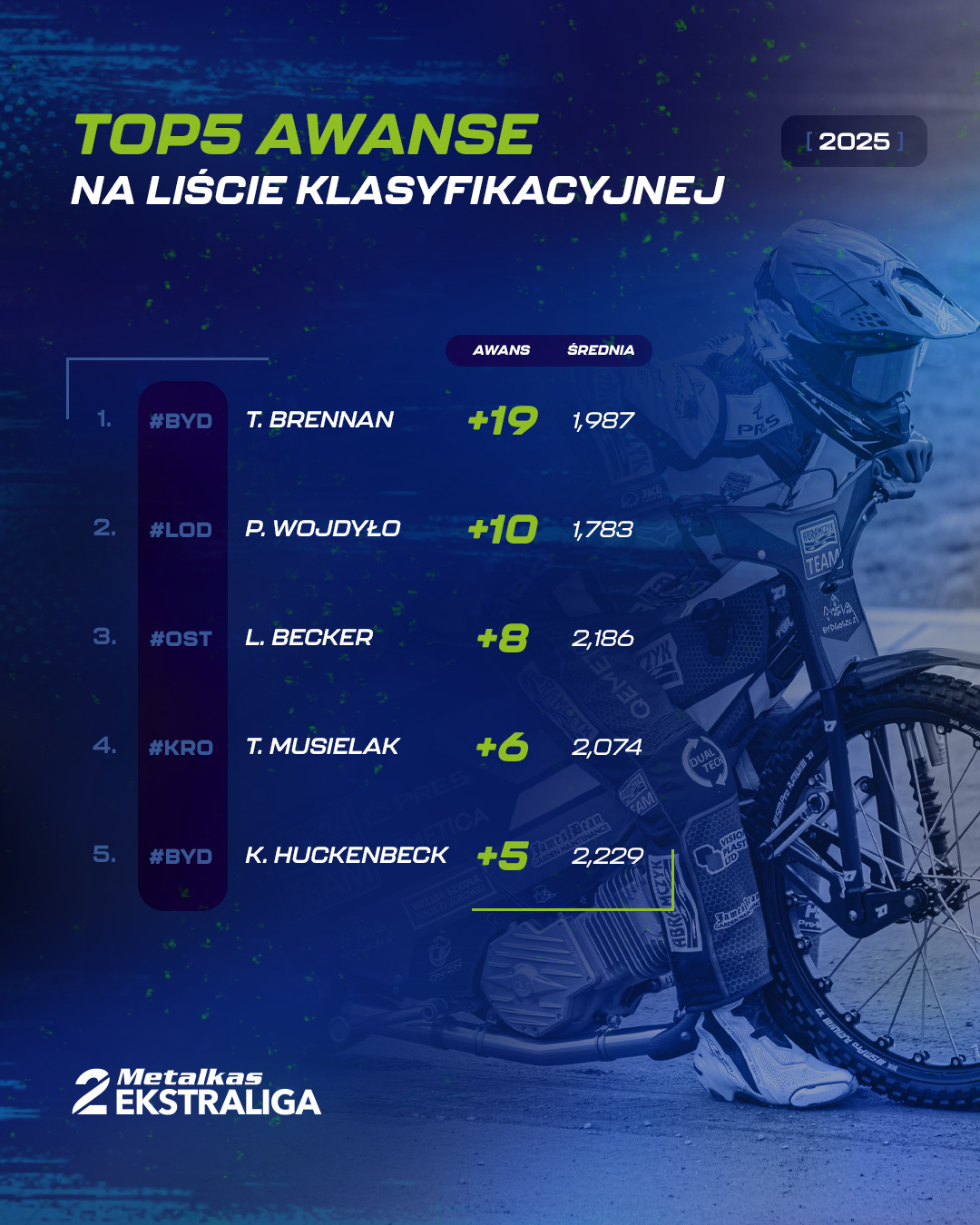 TOP5 awansów w klasyfikacji indywidualnej METALKAS 2. Ekstraligi: